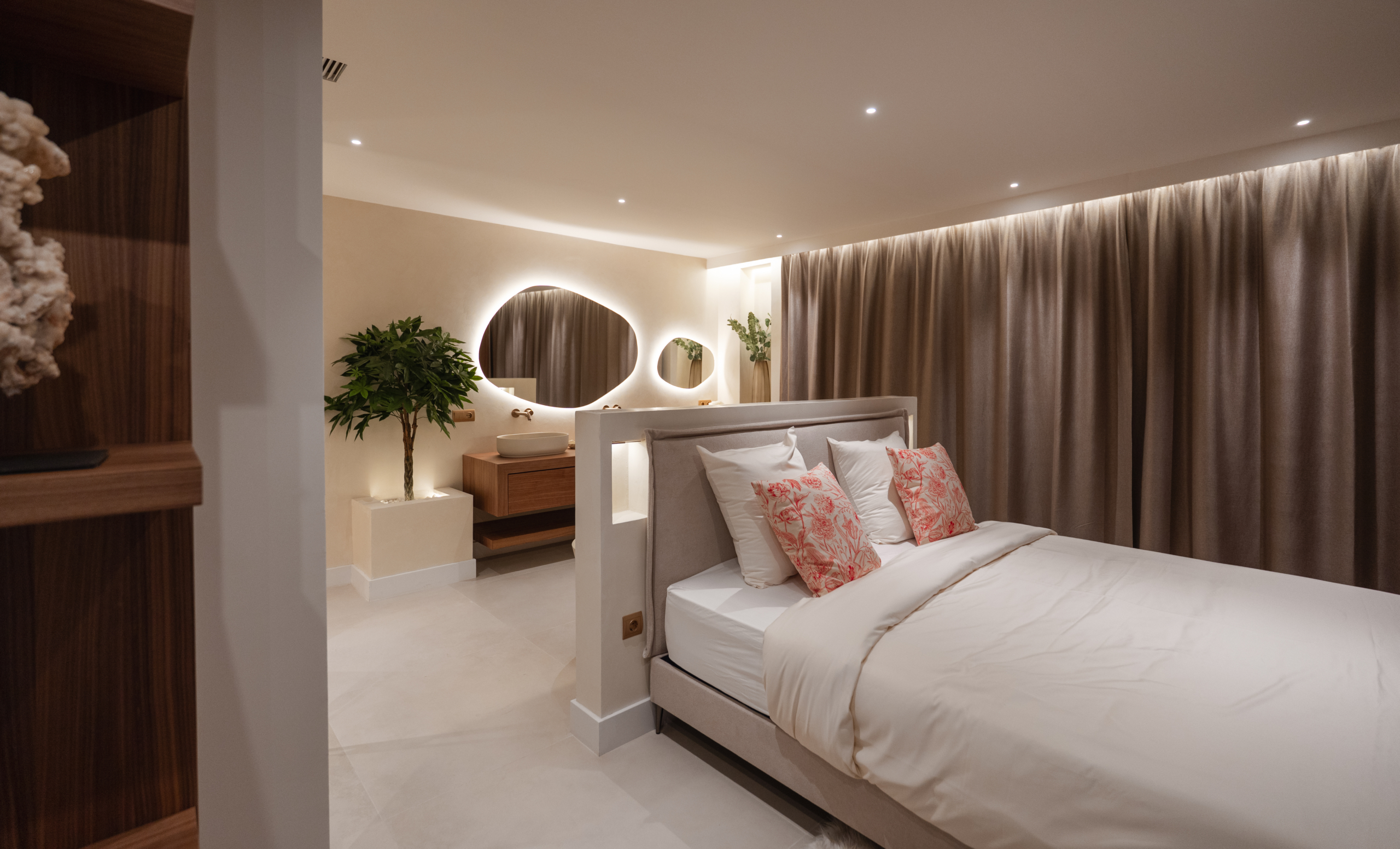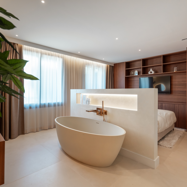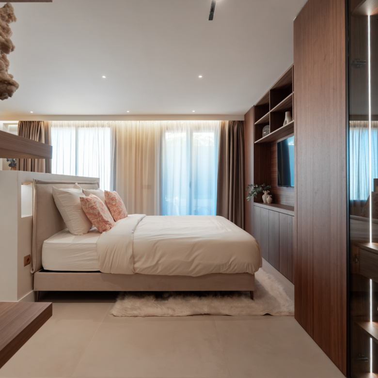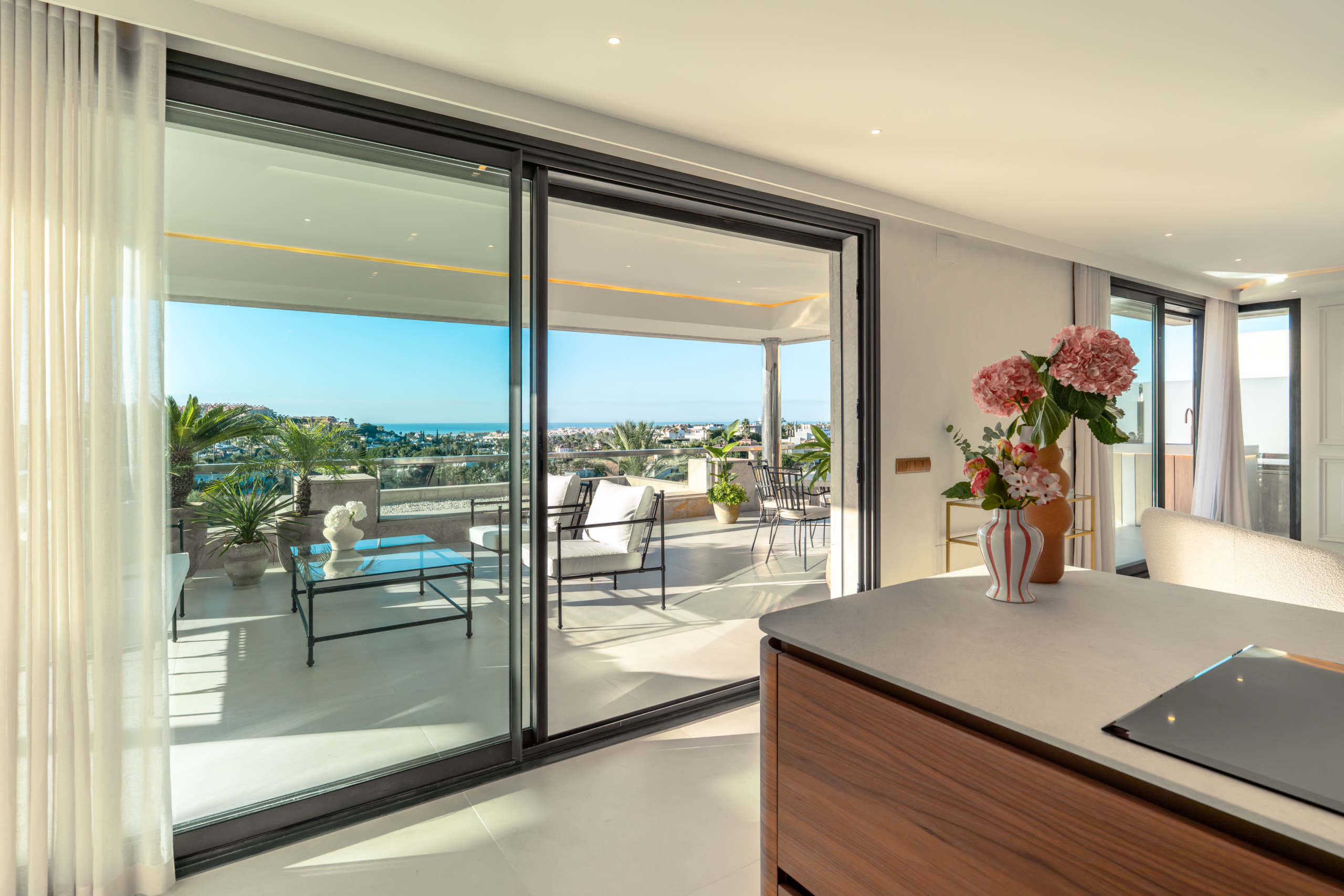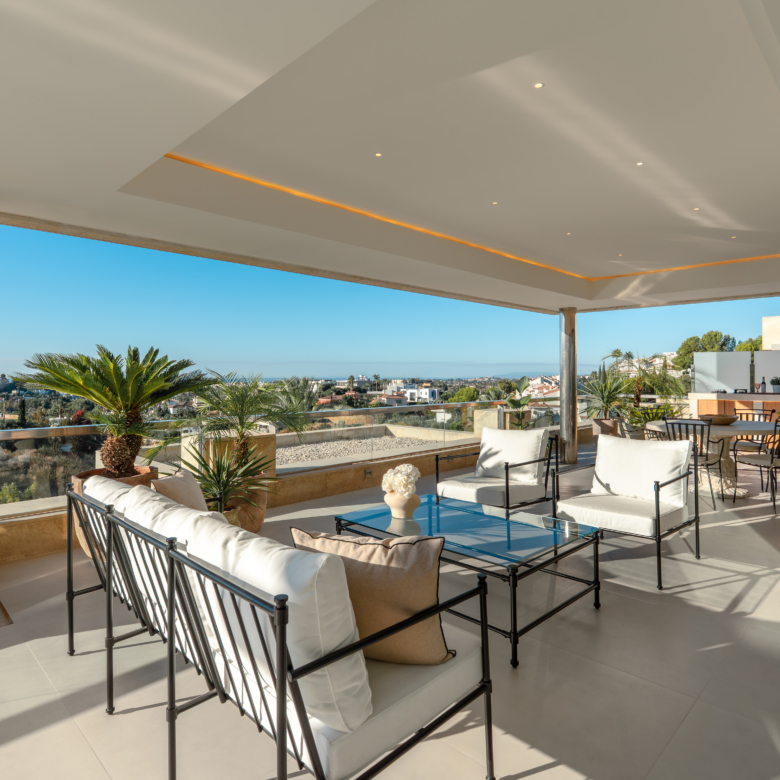 Deze uitzonderlijke woning beschikt over een hoogwaardige open keuken met dubbele wijnkoelers en premium afwerkingen, die functionaliteit naadloos combineert met een modern Scandinavisch interieur. De stijlvolle inrichting versterkt de rustige en uitnodigende sfeer, terwijl het natuurlijke licht de ruimtes overstromt en een adembenemend uitzicht biedt op de Middellandse Zee, Gibraltar en Marokko.
